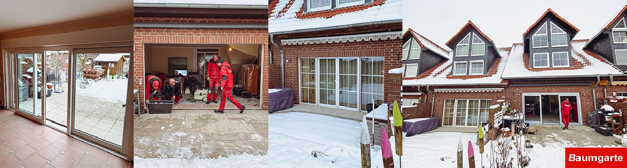 Die Herausforderung bei diesem Umbau bestand darin, die alte Konstruktion fachgerecht zu entfernen und die neue Hebe-Schiebetür passgenau zu integrieren. Besonders hervorzuheben ist hierbei die Kombination mit einem fest aufgesetzten Rollladen, der optimal in die neue Türlösung eingebunden wurde.