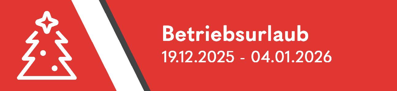 Unser Betrieb bleibt über die Weihnachtsfeiertage und zwischen den Jahren vom 20.12.2025 bis zum 04.01.2026 geschlossen.